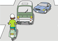 こんなときは、交差点手前で一時停止。左折車を先に行かせるようにしましょう。